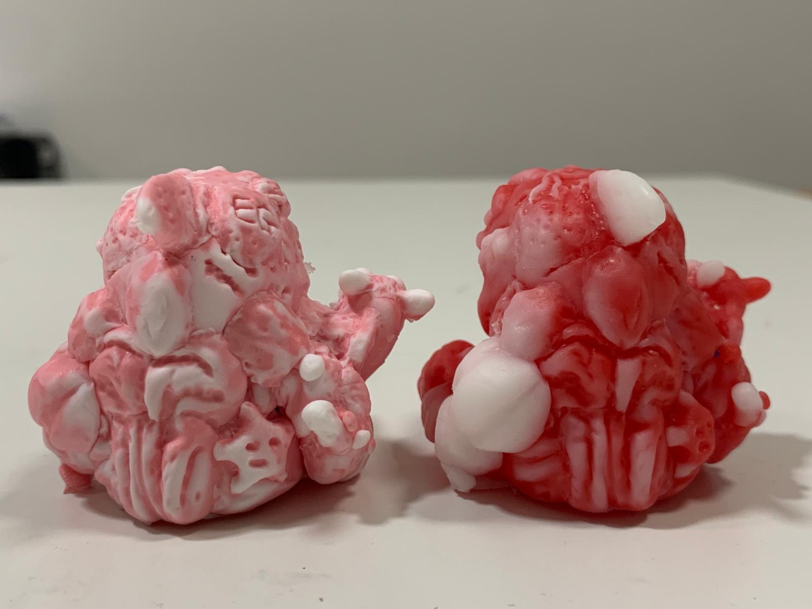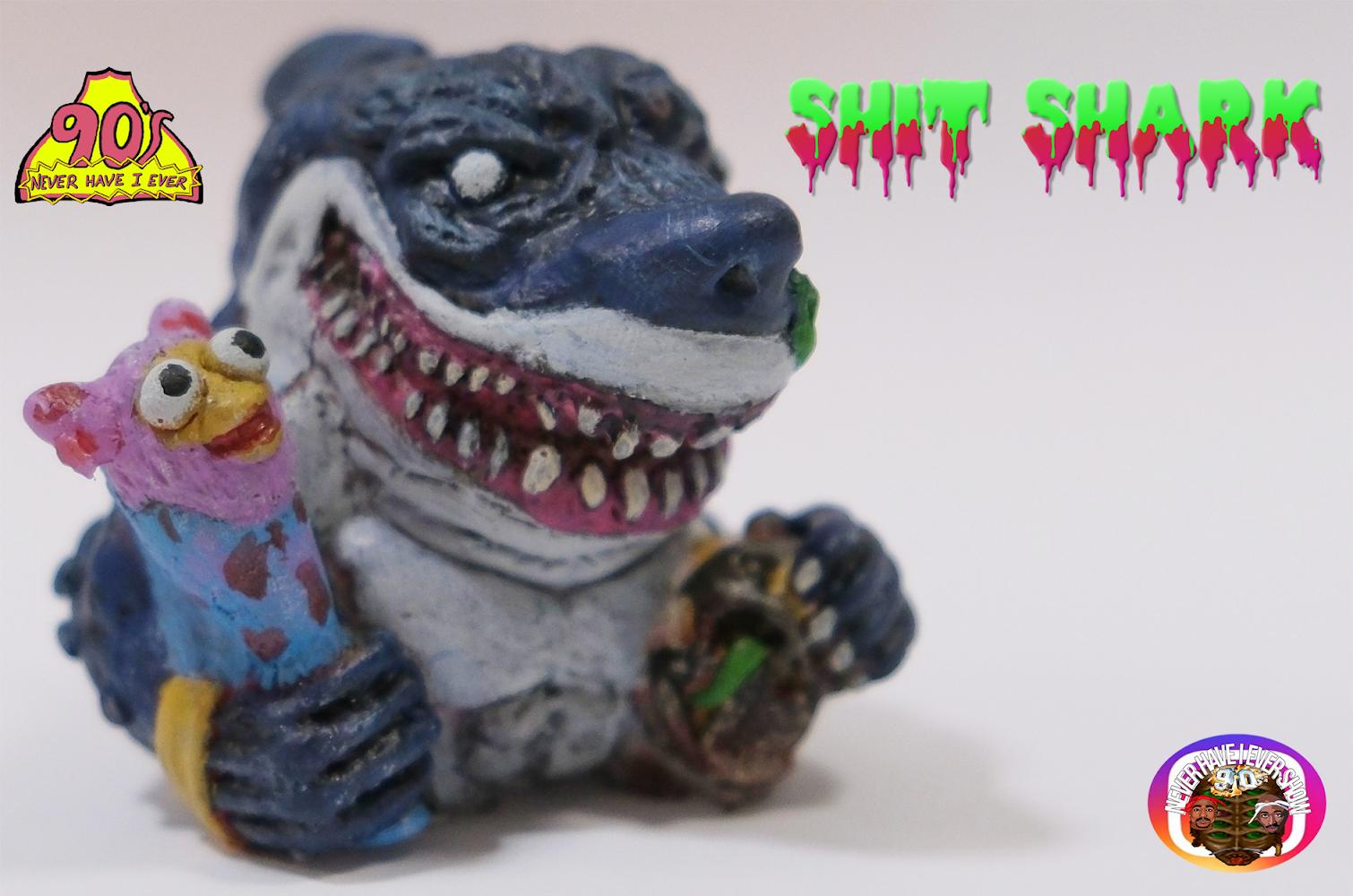 2.5 inches tall! Schit Shark was sculpted for the Never Have I Ever Show, 90s edition in September 2024. A loving tribute to street sharks and furbys. This mean guy will smack most of your other mabas with his furby mace!